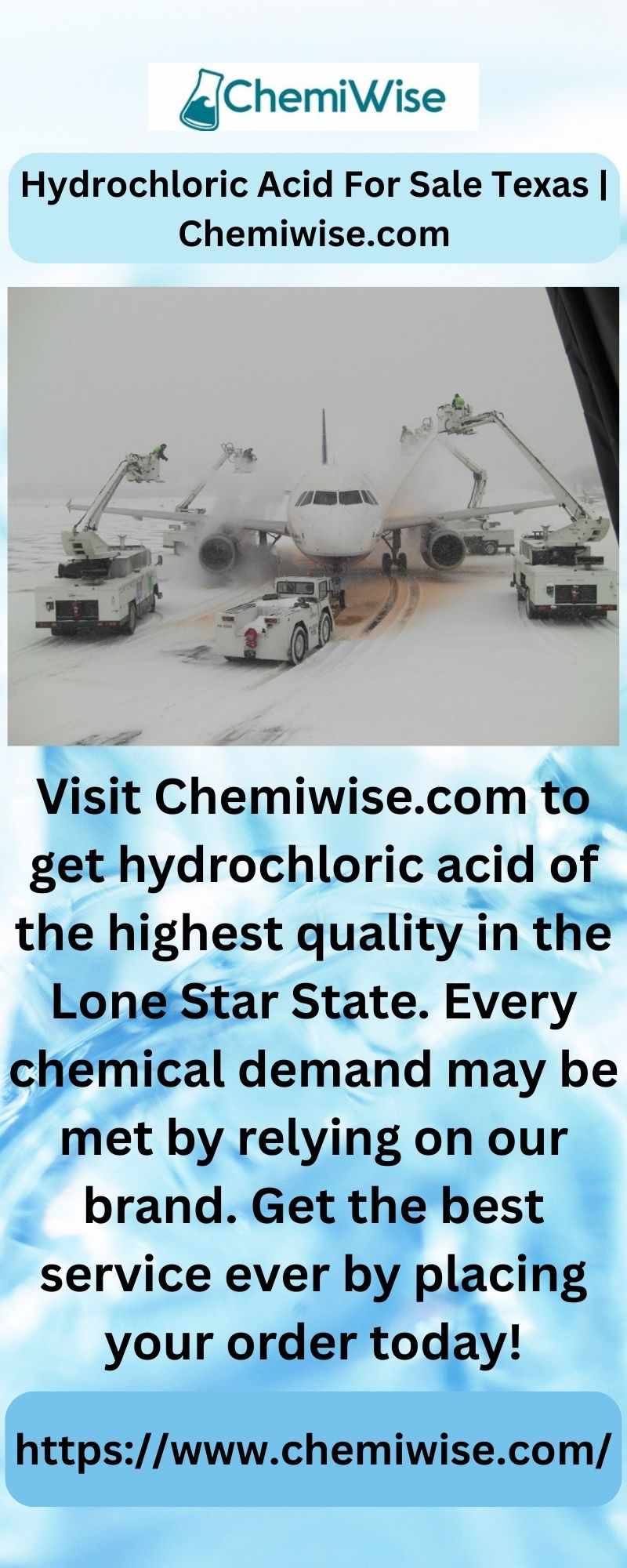 Visit Chemiwise.com to get hydrochloric acid of the highest quality in the Lone Star State. Every chemical demand may be met by relying on our brand. Get the best service ever by placing your order today!